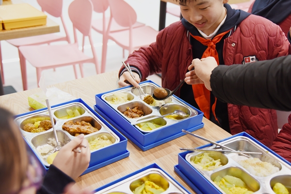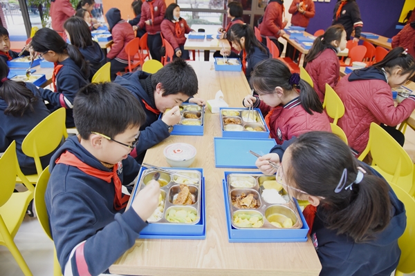 2020-03-02 schooladmin_z 师生餐厅 未来科技学校的校园餐厅窗明几净、整洁有序。每日凌晨,最新鲜优质的食材就从田间直送到了厨房;根据不同年龄学生的生长需要,餐厅供应的食物在满足均衡营养的基础上注重色香味。同时,每周定时向家长推送下一周的食谱以及营养报告,让每一位家长都对孩子在学校的饮食了然于心并感到彻底的安心。