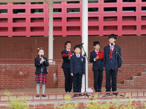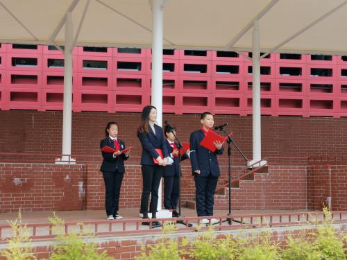 升旗手:预备2班孙振宇、一6班李冕、吴洛依